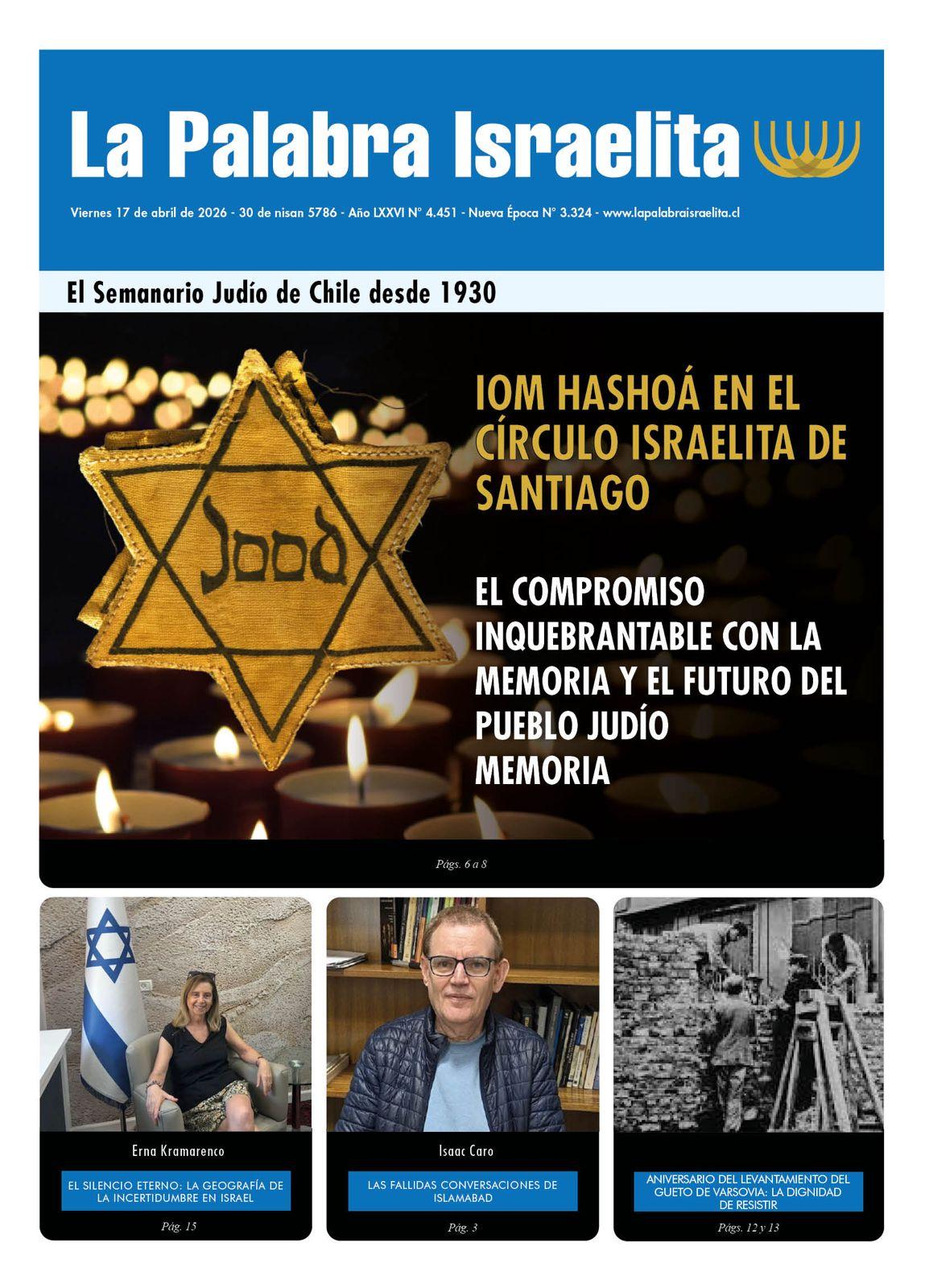 En el Círculo Israelita de Santiago se realizó la conmemoración de Iom Hashoá. No se trata solo de una fecha en el calendario, sino de un momento de recogimiento para recordar el horror del Holocausto: la discriminación, la persecución, los pogroms, las leyes raciales, los guetos, los vagones, los campos de concentración, las cámaras de gas, las pilas de cadáveres, los crematorios, los cuerpos famélicos de quienes morían y de aquellos que lograron sobrevivir. Mientras el mundo miraba hacia otro lado, la maquinaria nazi asesinaba a seis millones de judíos, además de homosexuales, personas con discapacidad, gitanos y eslavos, entre otros.Por eso, recordar es un deber no solo de los judíos, sino de un mundo que optó por no ver la barbarie. En 1951, se definió que el 27 del mes hebreo de Nisán se conmemorara uno de los pasajes más oscuros de la historia moderna. Fue elegido simbólicamente una semana después del final de Pésaj, la fiesta de la Libertad, en una fecha que coincide con el levantamiento del Gueto de Varsovia, entre otros hitos importantes para el pueblo judío. Ese sería el día del Kadish General (oración de luto) para aquellos que fueron asesinados en el Holocausto, desconociendo el día exacto de su muerte.Autoridades y CeremoniaA la ceremonia asistieron autoridades nacionales como el ministro de Relaciones Exteriores, Francisco Pérez Mackenna; el alcalde de Lo Barnechea, Felipe Alessandri; el director de la Oficina Nacional de Asuntos Religiosos (ONAR), Christian Jara; además de representantes de las embajadas de Israel y Polonia.La ceremonia se inició con el encendido de velas por parte de los sobrevivientes del Holocausto para recordar y honrar a los seis millones de judíos asesinados durante la Shoá. Eva Rogazinsky, Susanne Hessinger, Zila Fink, Ana María Wahrenberg, Klara Mosi y Rudi Hayman fueron acompañados por jóvenes integrantes de las Tnuot y representantes de distintas comunidades.A continuación, los rabinos del Círculo Israelita, Comunidad Sefaradí, Comunidad NBI y Comunidad Israelita Valparaíso - Viña del Mar, elevaron oraciones por las almas de las víctimas de la Shoá, recitaron el Izkor, el Kadish y El Male Rajamim, tras lo cual se hizo un minuto de silencio. También se proyectaron videos con testimonios de quienes sobrevivieron a la barbarie y lograron llegar a Chile, en donde encontraron un verdadero “asilo contra la opresión".Discursos y ReflexionesLiat Levy y Matías Muchnik dirigieron unas palabras a los asistentes en representación de las tnout (movimientos juveniles), tras lo cual se presentó “La mesa de Pésaj se desintegra” y “Cartas de las madres/padres a sus hijos”, obras del grupo de teatro y voluntarios, bajo la dirección de Moisés Norambuena y con coreografía de Taly Winer.A continuación, Alfredo Misraji, presidente de la CJCh, señaló que:“Iom Hashoá implica la responsabilidad de no dar por hecho lo que hoy existe. De entender que lo que tenemos fue construido con esfuerzo, con resiliencia desde el dolor y el trauma. De cuidar esa continuidad, como herencia. Tomar conciencia de lo que recibimos… y de lo que estamos llamados a proteger".Galit Silberman, presidenta de la Federación de Estudiantes y Jóvenes Judíos Chile (FEJJ), también se dirigió a los presentes expresando su preocupación por el antisemitismo:“Hoy se justifica la violencia en nuestra contra, se agreden nuestros espacios de educación y de culto religioso, lo que nos preocupa y duele. Frente a la oscuridad del odio, la memoria puede convertirse en nuestra mayor defensa. Nuestra tarea no es solamente recordar, es resignificar la memoria".Por su parte, el embajador de Israel en Chile, Peleg Lewi, destacó el valor de la resiliencia:“Nuestro pueblo eligió no solo sobrevivir, sino creer, crecer, crear, construirse y construir. Construimos en Israel un hogar para todos nosotros, un hogar nacional sobre el cimiento de esperanza, fe y responsabilidad mutua”.“Javer Olam” En esta ocasión, se otorgó el reconocimiento “Javer Olam” a Ignacio Sánchez, exrector de la Pontificia Universidad Católica, quien fue presentado por el rabino Eduardo Waingortin quien dijo: “Mientras tengamos vida tenemos que recordar las millones de vidas que fueron truncadas y también tenemos que reparar. Hoy distinguimos a Ignacio Sánchez por contribuir a esa reparación a través de la educación”.El otrora rector de la Universidad Católica hizo alusión al Concilio Vaticano II, asegurando que: “Recordar es comprometernos activamente con el respeto irrestricto a la dignidad de cada persona humana. En este horizonte, el diálogo ecuménico e interreligioso se presenta como una tarea fundamental”. Precisó, además, que el rechazo al antisemitismo nos convoca a ser constructores de puentes, labor que buscó durante su gestión académica.La ceremonia fue organizada por el Círculo Israelita, el Instituto Hebreo, el Archivo Judío de Chile, la Comunidad Judía de Chile y el Museo Judío de Chile (MIJ). Este último se encargó de la producción y curatoría general del evento, enfocado en el concepto de despojo familiar. "Para profundizar en este mensaje elegimos conectar con la festividad de Pésaj, destacando que el pueblo judío siempre ha podido levantarse", indicó Michelle Reich, directora de operación y desarrollo del MIJ.Así como se estableció en 1951, en Chile y en todo el mundo se recordó que “nunca olvidar” no es solo una declaración, sino un compromiso de honrar la historia de quienes perecieron y de reafirmar que, frente a la oscuridad, el pueblo judío siempre elige la vida.